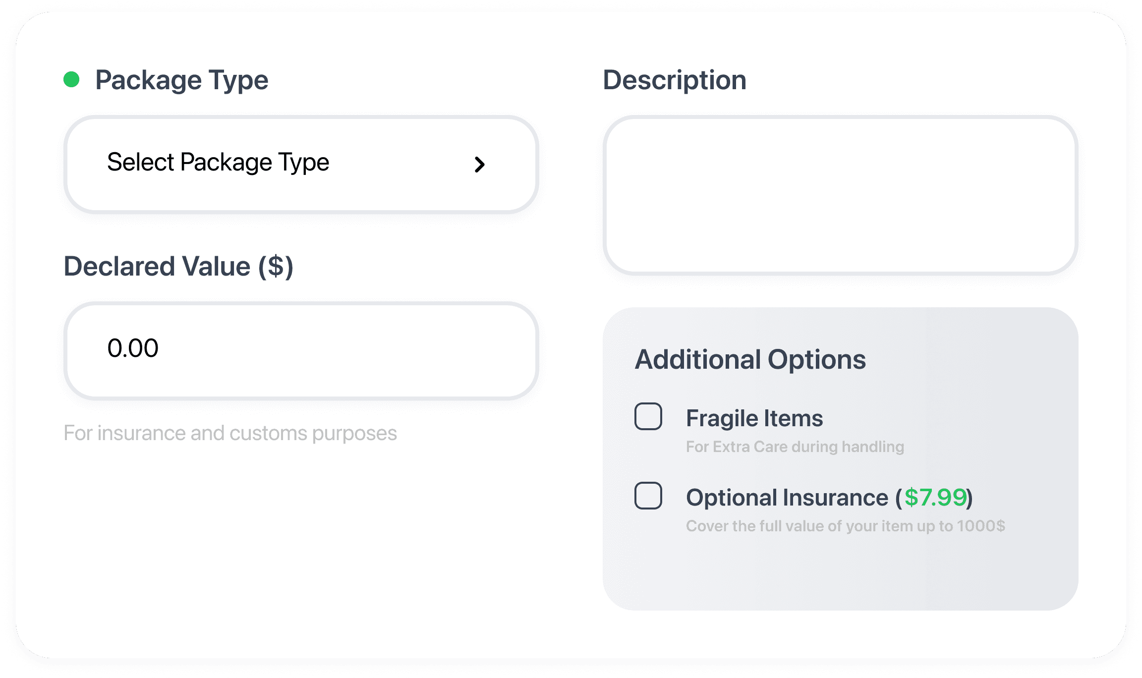 Enter your package details, destination, and choose from trusted carriers — all in just a few taps.