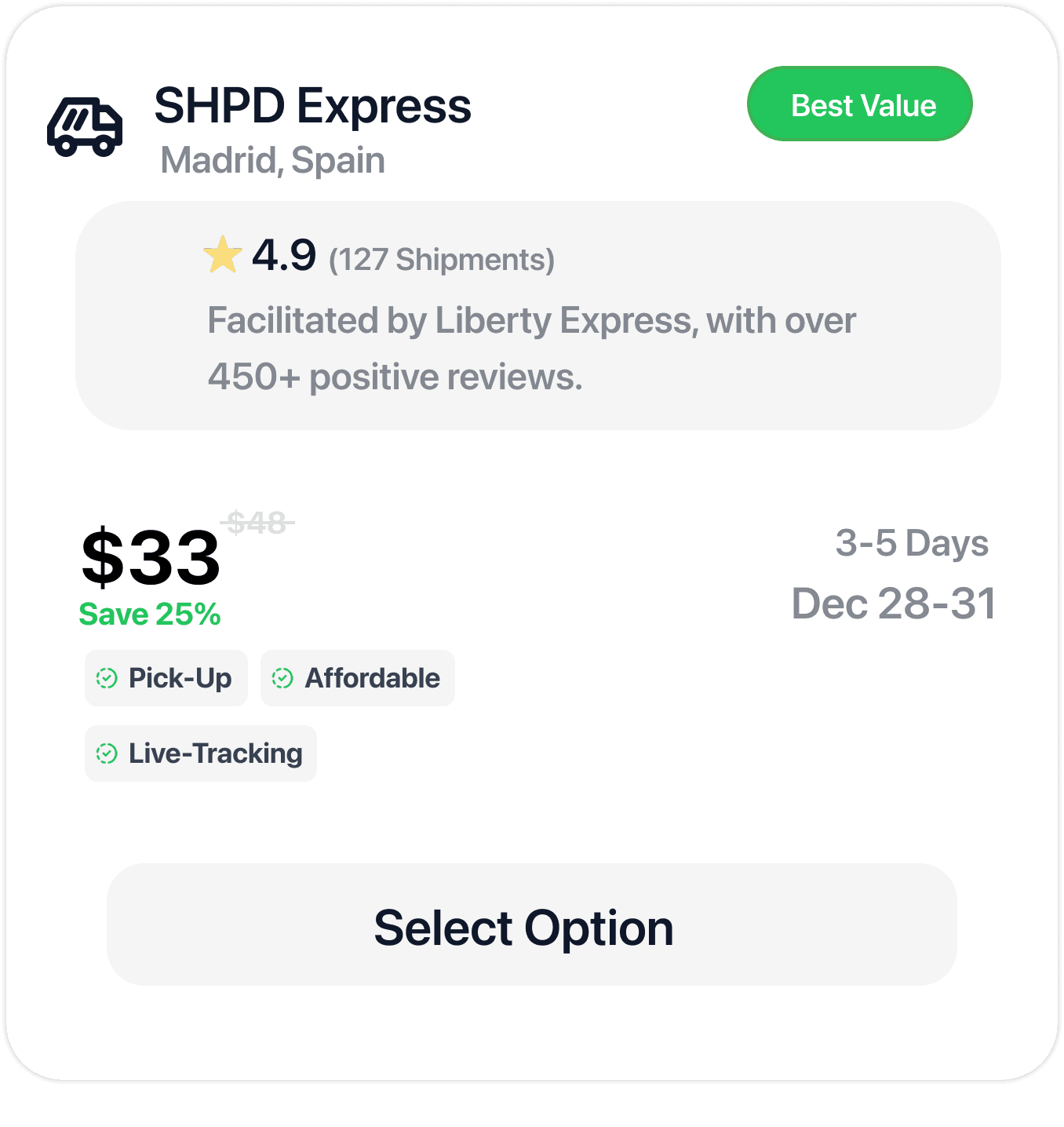 Partnered only with reliable, vetted shipping companies so your packages are always in safe hands.